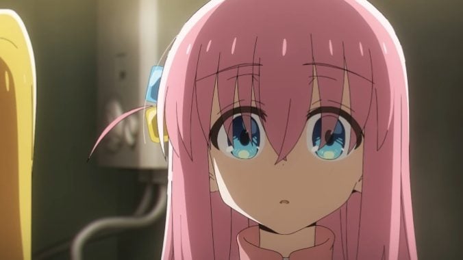 However, the most striking element of this production are its aesthetics, a feast of artistic techniques that bounce between visual styles and mediums to comedically overdeliver on every gag. The mixed media approach uses disparate color palettes, claymation, live action, 3D rigging, and just about everything else imaginable to portray what it’s like to have a messy anxiety-addled brain. While these jokes could have come across as mean-spirited, as someone who can relate to the protagonist, it feels like it comes from a place of personal experience rather than ridicule. It does have one misstep in a recurring alcoholism joke that I hope is addressed more seriously down the line, but besides this, just about everything lands. And beyond its escalating humor, the direction also conveys the overwhelming power of music, transforming humble gigs into moving scenes that capture the beauty of live performance. At one point, the camera morphs a flickering lamp into stage lighting, turning a street corner into a venue as Hitori shreds an impressive lick and steps towards overcoming her apprehensions. These sequences maintain the creativity of the comedic cuts while using fluid character animation to demonstrate the weight and physicality of playing an instrument, these musicians’ self-doubts and worries melting away as they’re lost in song. Altogether it’s a visual tour-de-force, equal parts funny, poignant, and painfully relatable.