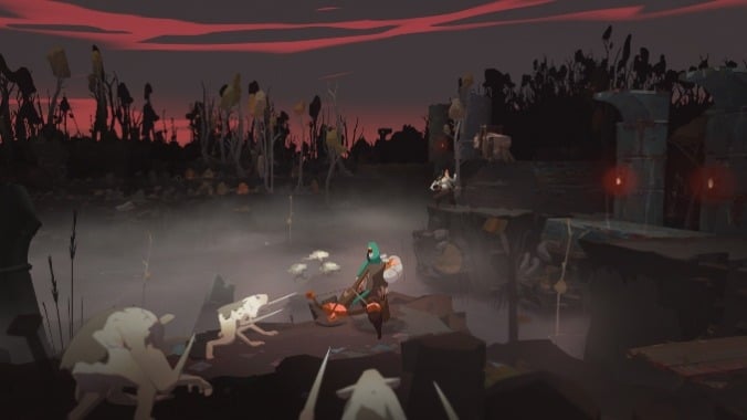 Since the story isn’t complete, it’s a little tough to parse what is ultimately going on here thematically, if anything substantial, but the narrative being presented via an in-universe oral storyteller places things in a grandiose, broad context that works well with the fantasy stories it’s riffing on. Ultimately, while there isn’t a ton going on here in terms of explicit storytelling, especially because you’ll spend dramatically more time building and tinkering than in the game’s short illustrated cutscenes, it all provides just enough context to let the strong art design and gameplay loop do its thing.