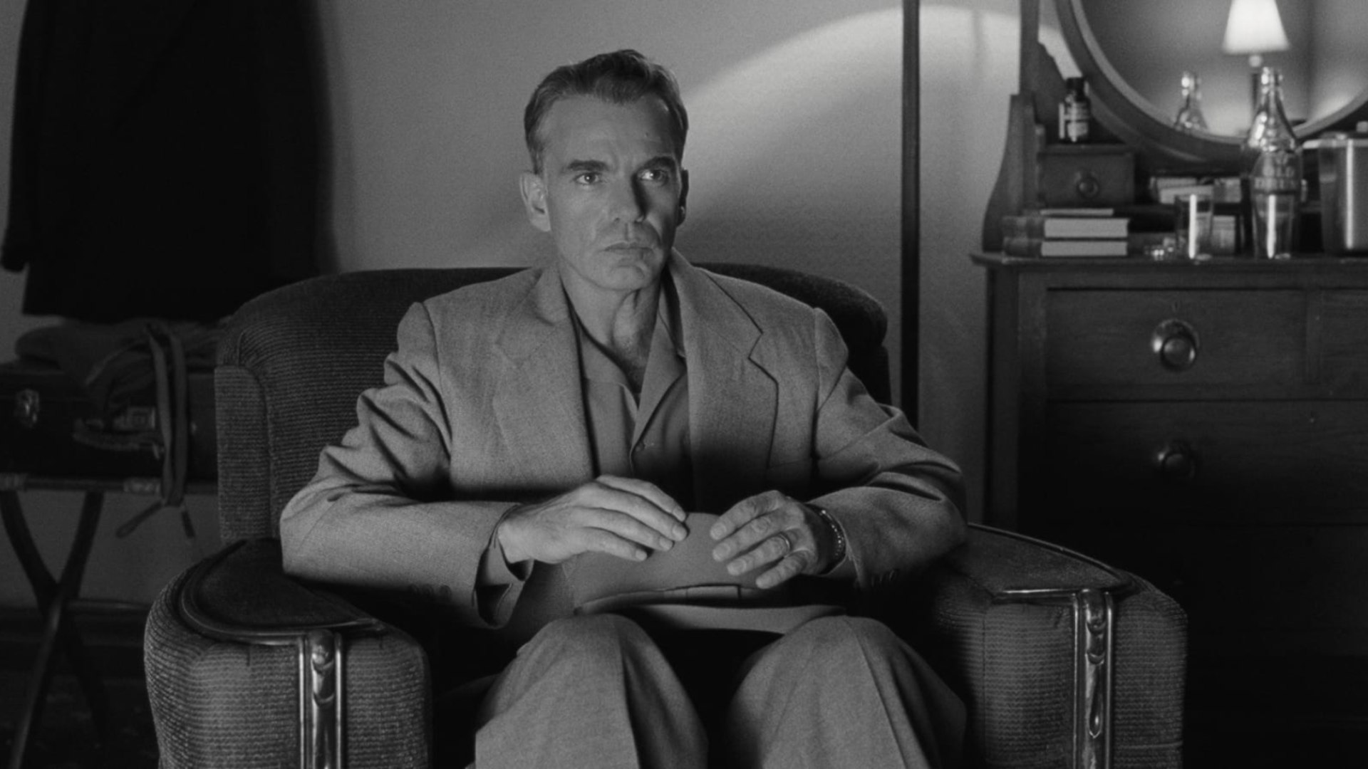 Perched atop the cliff overlooking the Coen brothers’ mid-career mire (Intolerable Cruelty and The Ladykillers), The Man Who Wasn’t There calmly lights its Chesterfields as the world falls apart around it. A black-and-white noir, whose lead (Billy Bob Thornton) almost exclusively speaks in confessional voiceover, the Coens’ sordid ode to hardboiled legend James M. Cain—replete with murder, infidelity, entrepreneurial schemes, pig-riding, and road head—is surprisingly mundane, and a strange contemporary of the brothers’ worst and silliest films. In context, this makes its existential musings and postwar anxieties all the bleaker. Though The Man Who Wasn’t There is another funny, black-hearted, cinephilic genre exercise, its somber and shadowy approach plumbs the Biblical, Shakespearean depths that would later define A Serious Man and The Tragedy Of Macbeth.