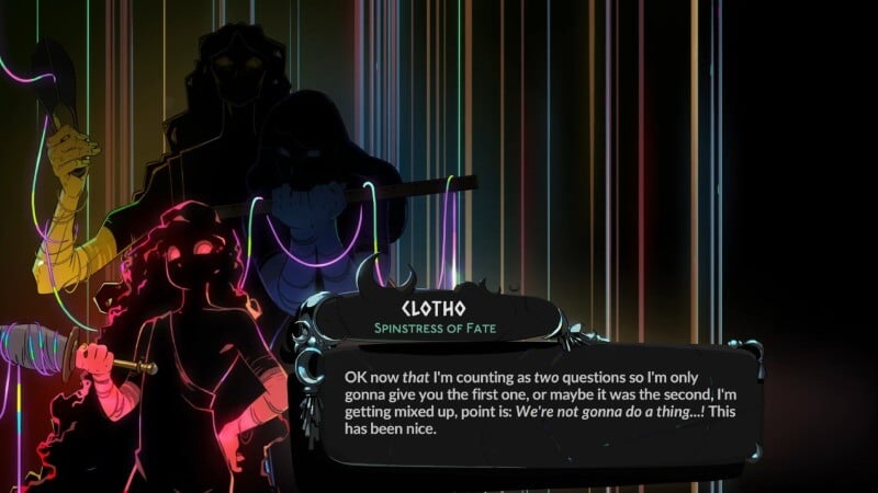 Yet, as I plunged through the 1.0 update after spending over 70 hours into the game during early access, pretty much every encounter and revelation felt almost deliberately unceremonious. The story gives its main villain yet another pat on the back, offering Chronos, the god of Time, an act of mercy right at the very end, and then putting you with a what if, gentler rendition of him. As other writers like my friend Jay Castello have pointed out, this act is carried by Zagreus, not Melinöe, the sequel’s protagonist, and fits thematically with who he is. But after this happens, Melinoë is left with the same task. She must continue killing Time—the “bad” permutations of him who remain in other timelines—to prevent the cycle from repeating all over again. “For how long?”, she often asks. Nobody has a concrete answer.