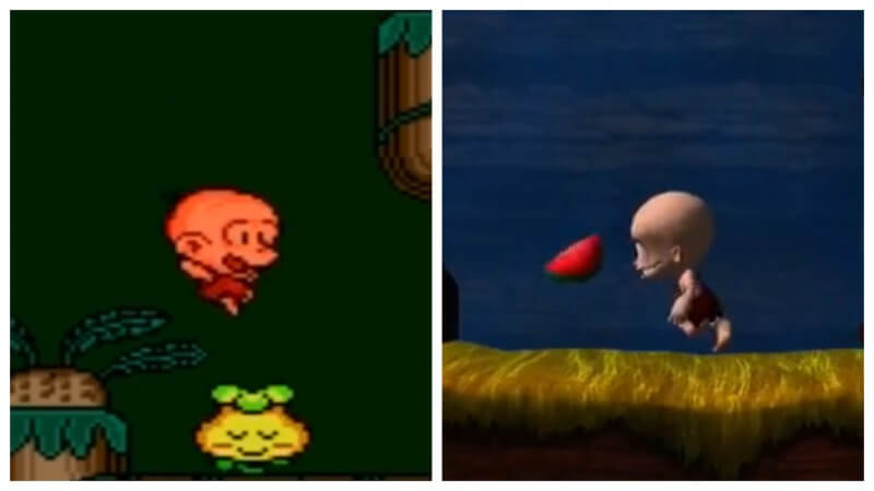 Left: Bonk’s Adventure, 1989. Right: Bonk Brink of Extinction, 2011.