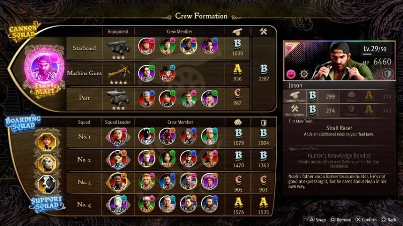 While Pirate Yakuza in Hawaii’s mainline plot also has some seafaring antics, namely that it concerns finding a long-lost buried treasure, it’s really in these “side” adventures where a significant percentage of the pirate antics take place. For quite a while, the Yakuza series has been excellent at crafting enjoyable, very distracting sub-missions, and here they’ve refined those elements even further. You’ll shore up your ship, the Goromaru, taking a barely floating wreck and transforming it into a perfect restoration of an Age of Discovery vessel (besides the laser guns and jet boosters you may or may not have attached). One of the most important things to upgrade are the weapons, and there’s plenty to choose from, each with pros and cons: for instance, standard cannonballs have great range and let you safely poke from a distance, while close-range weapons like the flamethrowers are riskier but positively shred foes at point blank. And although these tools are essential, the people operating this firepower are often more important than the guns themselves, and you’ll spend lots of time staffing up a crew of around 40 shipmates as you scour the streets of Honolulu, play mini-games, and engage with every bell and whistle to recruit a lovable band of oddballs. They each have different stats and classes, leveling up as they get their sea legs, which in turn improves your ship’s capabilities. If the Pokémon-spoofing Sujimon from the previous entry in the series had me obsessively searching every street corner for allies, Pirate Yakuza in Hawaii’s crew system took this even further.