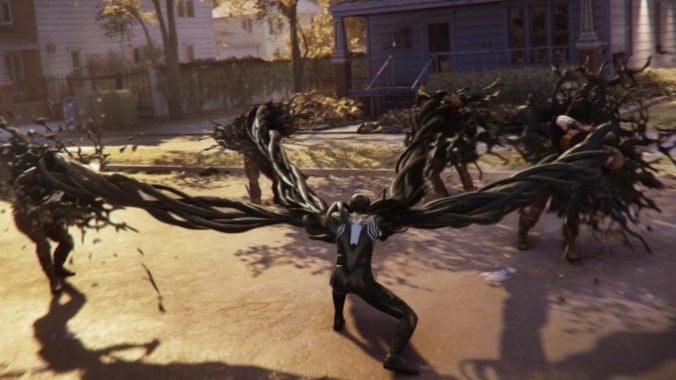 Marvel’s Spider-Man 2 feels like the best of the three games Insomniac has managed to put out in this series, and this especially helped me explore the game’s nook and crannies to the extent I managed. Web-swinging feels as seamless and kinetic as ever and, to sell a completely different fantasy, Insomniac has given players wings to sort of fly with. It’s more like a glide, but frequent wind tunnels and rooftop vents make it so that you can essentially fly through the city and even into other boroughs with relative ease. In spots like Astoria, which are mostly residential suburbs and thus close to the ground, it feels nice to have the alternative option, which pairs well with a super jump either Spider-Man can now use. Miles has a slight edge in that his Venom lightning powers include a jump and dash forward that especially give him momentum. These powers also help Miles stand out in combat, emerging as the lither of the two protagonists, whereas Peter and his Spider-Arm tech and Symbiote powers clearly hold more of the brute force. While they stand apart, people will gravitate towards their favorites and will largely find they play them very similarly, especially since they share half their abilities and all their gadgets. Speaking of, as good as it feels to play either, Marvel’s Spider-Man 2‘s combat still feels particularly bloated with techniques and options that feel flashier than they are helpful, and cluttering so many of the face buttons with such different utilities and abilities makes me feel like I’m clumsily making my way through most fights, and there are a lot of fights in this game. Moving forward, I genuinely think the team should revisit how many abilities and gadgets players really need and hopefully pare things back rather than continue growing the respective repertoires and armories. Insomniac has shown that they are reticent to grow without good cause in other areas of the game, and so hopefully they can bring that thinking to how they approach combat.