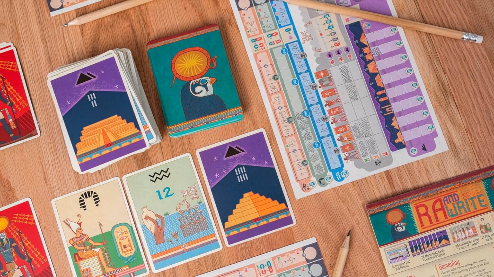 One aspect of Ra that’s missing in Ra And Write is the auction mechanic, which became a sort of early calling card for Knizia, the most prolific board game designer in the world. He had several early successes in the 1990s, including his tile-laying games (Samurai, still my favorite of his; Tigris & Euphrates) and his auction games (Ra, Medici). This game doesn’t feel a lot like a Knizia game, however, beyond the fact that it does “work”—his games are always done mechanics first and themes last, so nearly all of them play pretty flawlessly, and this one does as well.