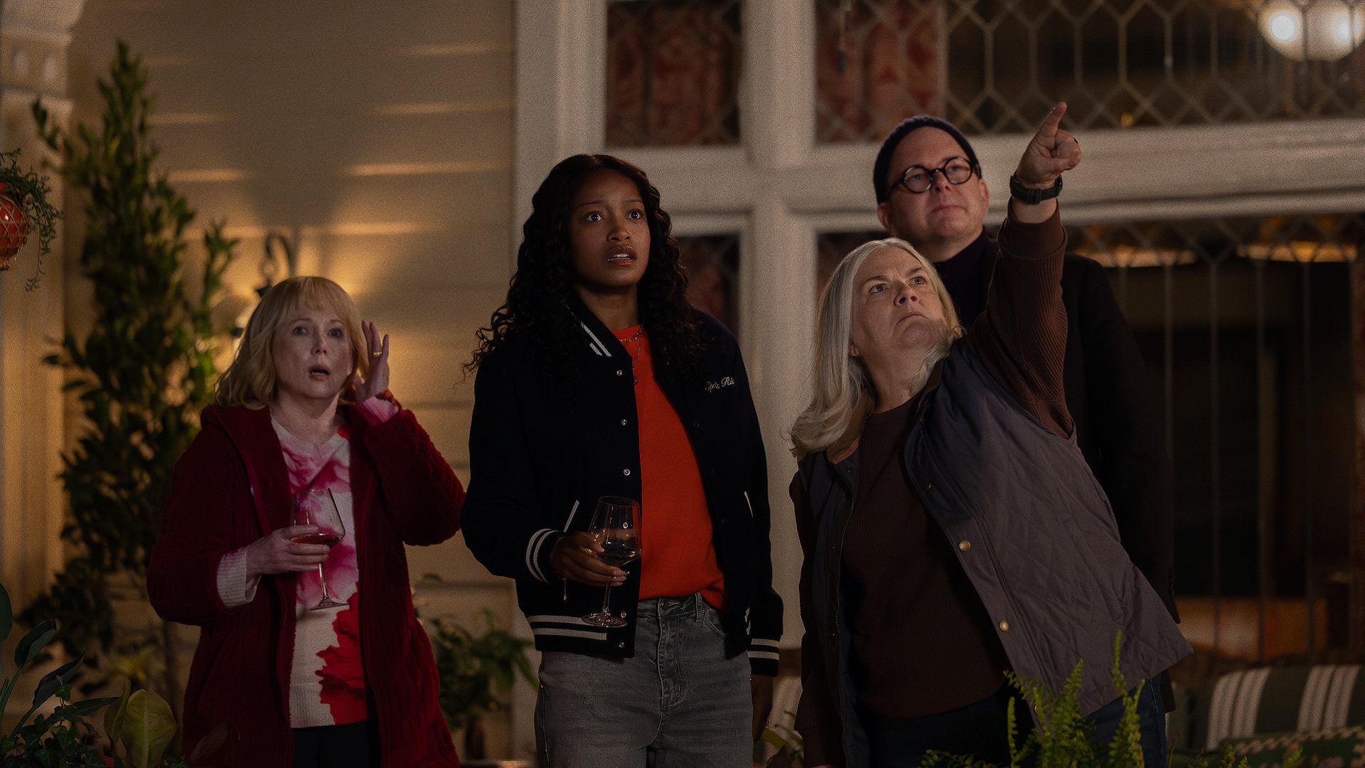 Julia Duffy, Keke Palmer, Paula Pell, and Mark Proksch in The Burbs, Photo: Elizabeth Morris/PEACOCK