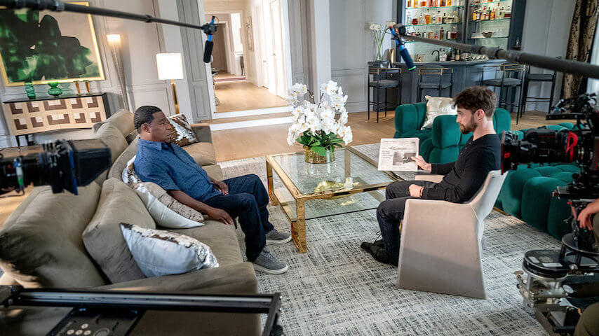 Playing the uptight British artist allows Radcliffe to revel in Arthur’s social stiffness (his effortful “my dudes!” greeting to Reggie and Monica segues to an immediate apology) against the filmmaking wiles he smugly confides to his unseen crew. (The way Reggie unexpectedly echoes the gloating Arthur’s use of the word “fingies” later in the episode is another signature Fey-verse touch.) The joke that Arthur’s self-satisfied jazz scatting assessment of his interviewing skills is cut short by his own cameraperson underscores how shaky his control actually is.