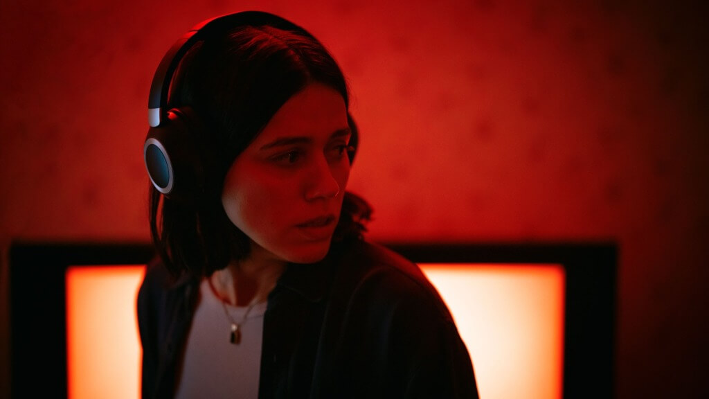 All of this happens around Evy (Nina Kiry), co-host of the popular paranormal podcast that gives the movie its name. Evy’s role is as the “resident skeptic,” while her co-host Justin (Adam DiMarco) is ready to believe in any phenomenon that gets ratings. The film is built around an episode investigating a series of ten iPhone voice notes anonymously emailed to the podcast, in which a woman becomes possessed by a malevolent force as she sleeps. An eerie talking doll is involved, as are hidden messages embedded into popular children’s songs. All of this will come together as the cursed recordings escalate in intensity, driving Edy—who, by the way, is caring for her dying mother at her home while all this is happening—into a terrified frenzy.