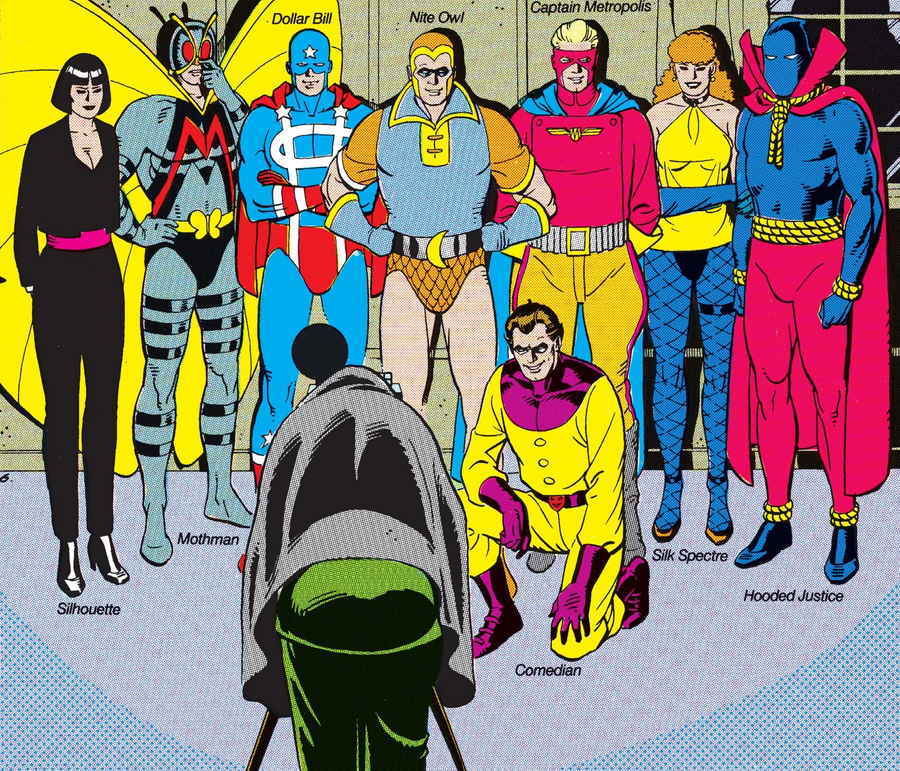 Well, HBO, knowing it would be heresy not to recreate the Minutemen’s pose from the original comic, is here to save the day. The network’s official Twitter account posted a photo of the whole gang, just as they’re rendered in Moore’s work.