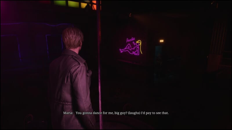 The Silent Hill 2 remake makes this pursuit all the more tantalizing. Her virtual depiction aims for photorealism in both looks and gestures. She’s also more chatty, commenting on certain locations and actions with fun, flirty flair. Inside Heaven’s Night, a strip club present in the original game that is expanded in the remake by becoming fully explorable, getting close to a pole can trigger a dialogue, with Maria mocking James and asking if he’s gonna dance for her.