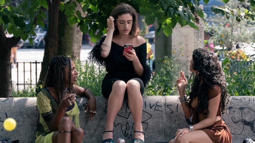 It’s not hard to see how people arrivedat the comparison: They’re both HBO series that were created by—and centered around—women in their twenties; they’re both about a “group of codependent friends”; they even both have cocaine storylines. And the character makeup of the series is pretty similar, too: I Love LA centers on Maia (Sennott), her two girl friends (Odessa A’zion’s Tallulah, True Whitaker’s Alani), one gay guy pal (Jordan Firstman’s Charlie), and boyfriend (Josh Hutcherson’s Dylan). Like Girls, the twentysomethings in I Love LA are narcissistic and know much less than they think. But they’re also way less pretentious and don’t put up any fronts about aspiring to careers in the arts. Where getting one of her songs on an episode of Grey’s Anatomy was a coup for Marnie, I Love LA‘s resident influencer Tallulah spends her days pursuing brand deals with everything from Balenciaga to Ritz Crackers. Maia’s mid-level job at a talent agency isn’t a survival job to pay the bills while she pursues her passion. It’s a ladder she intends to climb.